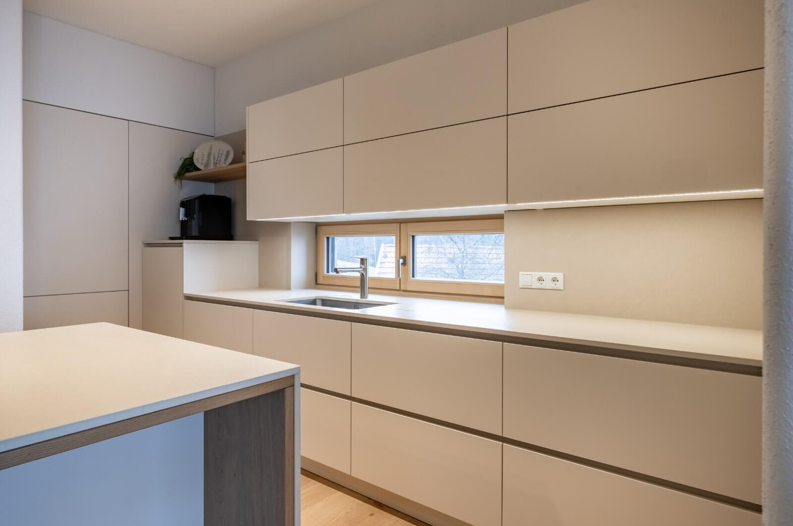 Moderne Luxusküche in Hellbeige – Exklusive Küchenplanung Wien & Burgenland